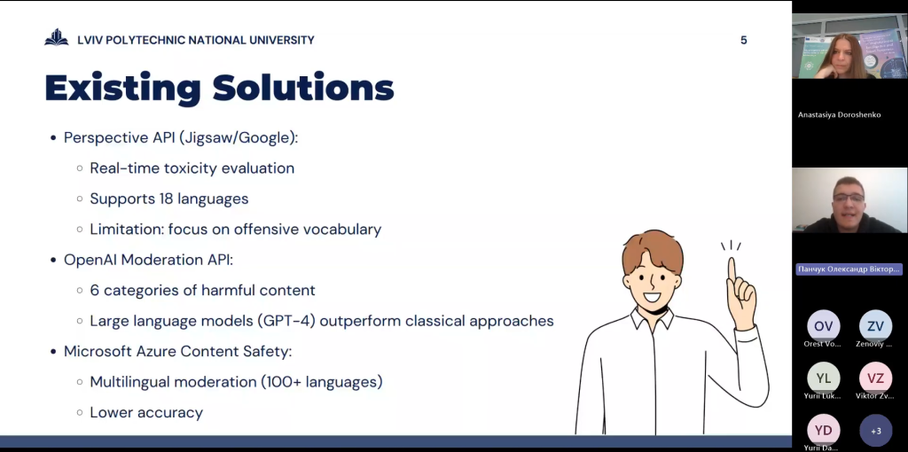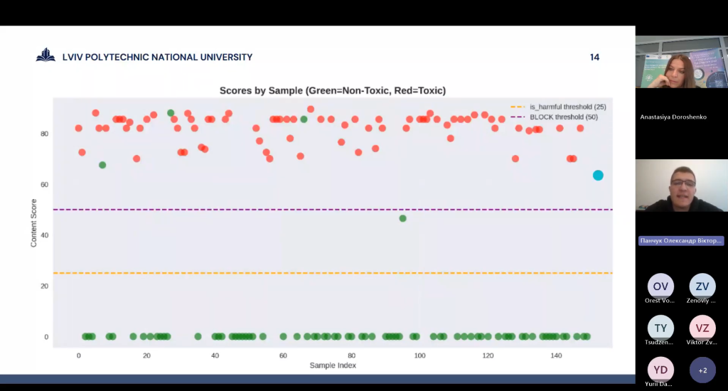 В межах секції учасники доповідали про інноваційні розробки із застосування методів надійного та пояснювального інтелекту в розумних містах, вирішення задач етичності та надійності в медичній сфері, використання методів ШІ в промисловості та розумному підприємництві.